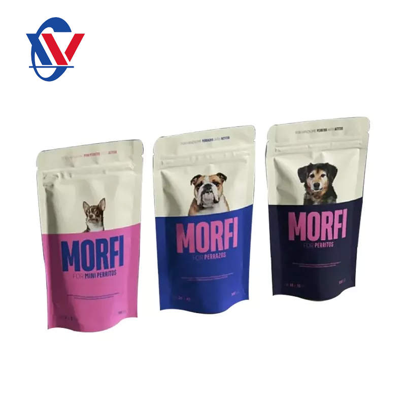 Os fornecedores da Wancai são especializados na fabricação de vários tipos de sacolas de ração para animais de estimação. As combinações de materiais desses sacos são cuidadosamente configuradas de acordo com os tipos de alimentos para animais de estimação, o tamanho e o peso da embalagem, a seleção do tipo de saco, os padrões de teste da fábrica para os sacos de embalagem, os métodos de processamento de alimentos, os requisitos de prazo de validade do sacos de embalagem e os requisitos específicos de design. Além da seleção de materiais, a integração de efeitos de impressão e elementos de design adicionais, como zíperes múltiplos de abertura e fechamento, zíperes deslizantes, válvulas de exaustão unidirecionais, bicos oblíquos, etc., ajudam a melhorar o desempenho e o valor geral. de sacos para embalagens de alimentos para animais de estimação.