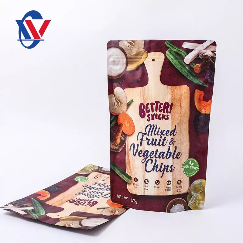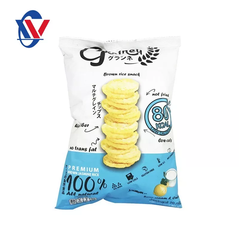 Os sacos de embalagem de lanches de batata-lascas geralmente usam materiais compostos de várias camadas. A camada mais externa é uma camada impressa para exibir informações de marca e produto; A camada do meio é responsável por bloquear o ar e a umidade para garantir que as batatas fritas permaneçam crocantes por um longo tempo; A camada interna está em contato direto com os alimentos e deve atender aos padrões de segurança alimentar. Além disso, alguns sacos de embalagem de ponta também usam materiais ecológicos, como materiais de PP recicláveis e materiais de PE sem fumaça e inodoro, e a camada interna usa algodão ecológico para absorver o óleo e proteger os alimentos.